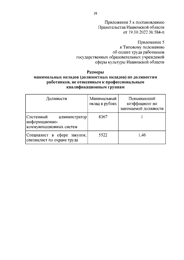 Постановление Правительства Ивановской области от 19.10.2022 N 584-п "О внесении изменений в постановление Правительства Ивановской области от 31.12.2008 N 367-п "О системе оплаты труда работников государственных учреждений Ивановской области, подведомственных Департаменту культуры и туризма Ивановской области"
