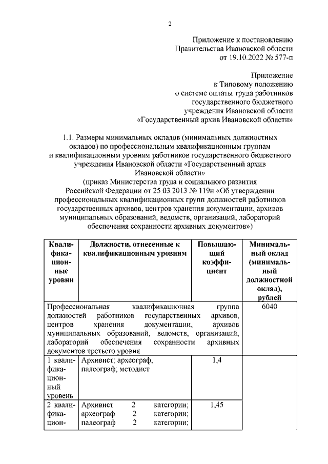 Постановление Правительства Ивановской области от 19.10.2022 N 577-п "О внесении изменений в постановление Правительства Ивановской области от 31.12.2008 N 363-п "О системе оплаты труда работников государственного бюджетного учреждения Ивановской области "Государственный архив Ивановской области"