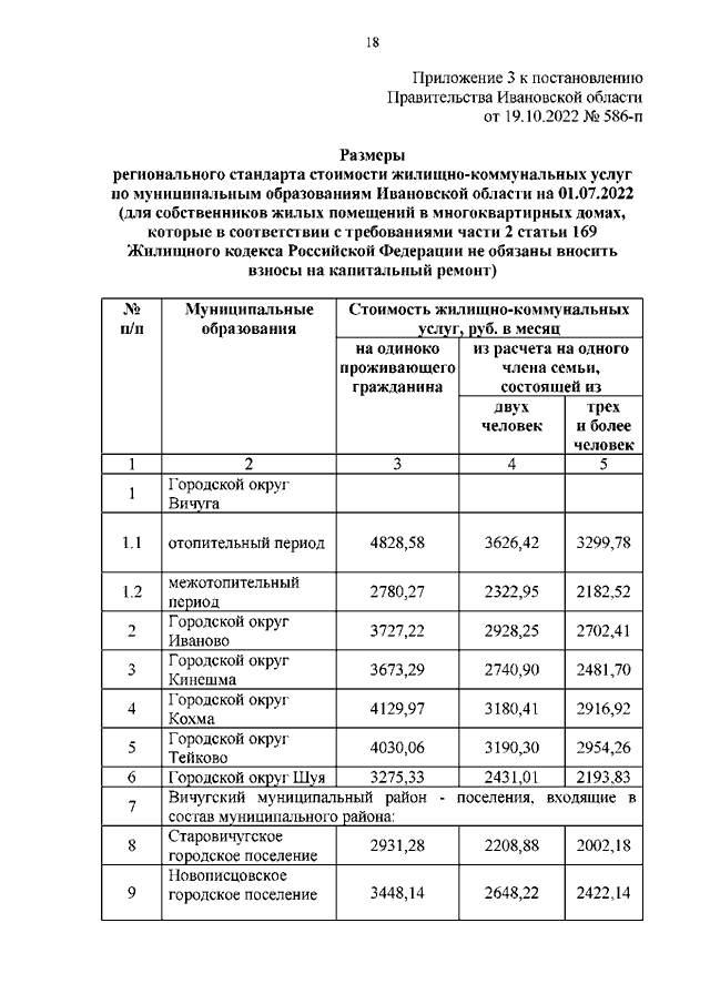 Постановление Правительства Ивановской области от 19.10.2022 N 586-п "О внесении изменения в постановление Правительства Ивановской области от 04.07.2022 N 339-п "Об установлении размеров региональных стандартов стоимости жилищно-коммунальных услуг"