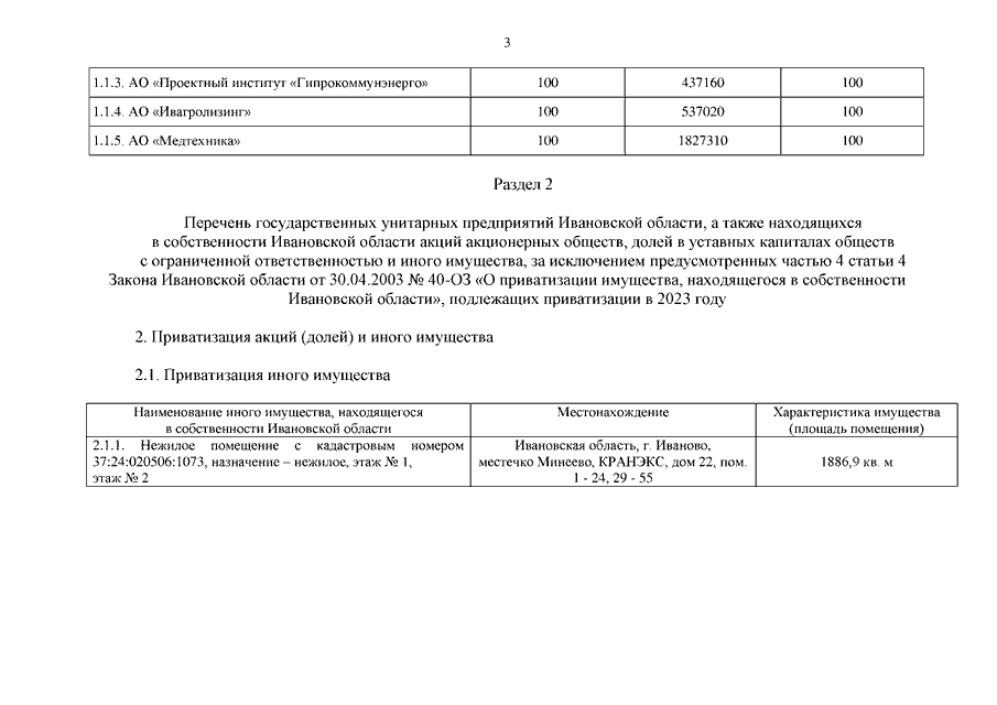 Распоряжение Правительства Ивановской области от 20.10.2022 N 130-рп "Об утверждении прогнозного плана приватизации имущества, находящегося в собственности Ивановской области, на 2023 год"