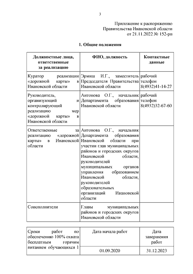 Распоряжение Правительства Ивановской области от 21.11.2022 N 152-рп "О внесении изменений в распоряжение Правительства Ивановской области от 04.09.2020 N 116-рп "Об утверждении перечня мероприятий по организации бесплатного горячего питания обучающихся, получающих начальное общее образование в государственных и муниципальных образовательных организациях, обеспечивающих охват 100 процентов от числа таких обучающихся в указанных образовательных организациях Ивановской области"