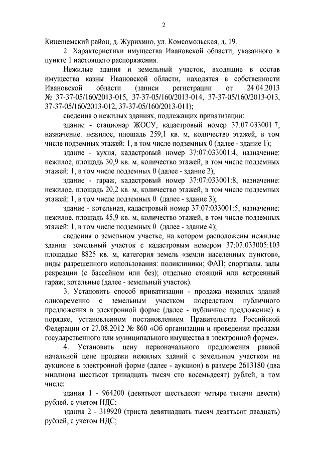 Распоряжение Правительства Ивановской области от 21.11.2022 N 156-рп "Об условиях приватизации нежилых зданий с земельным участком по адресу: Ивановская область, Кинешемский район, д. Журихино, ул. Комсомольская, д. 19, находящихся в собственности Ивановской области"