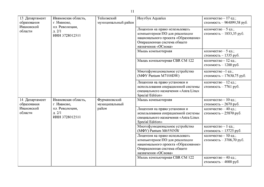 Распоряжение Правительства Ивановской области от 21.11.2022 N 159-рп "О передаче движимого имущества из собственности Ивановской области в собственность муниципальных образований Ивановской области"