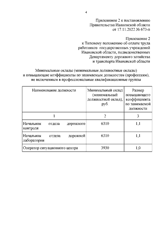 Постановление Правительства Ивановской области от 17.11.2022 N 673-п "О внесении изменений в постановление Правительства Ивановской области от 05.06.2019 N 202-п "О системе оплаты труда работников государственных учреждений Ивановской области, подведомственных Департаменту дорожного хозяйства и транспорта Ивановской области"