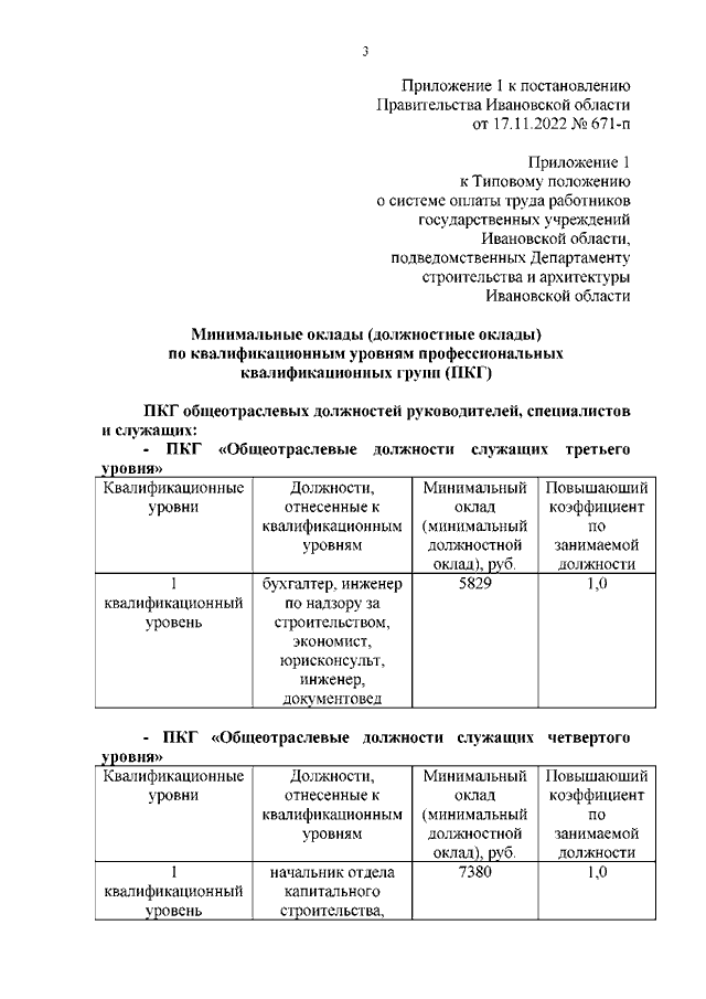 Постановление Правительства Ивановской области от 17.11.2022 N 671-п "О внесении изменений в постановление Правительства Ивановской области от 23.06.2021 N 293-п "О системе оплаты труда работников государственных учреждений Ивановской области, подведомственных Департаменту строительства и архитектуры Ивановской области"
