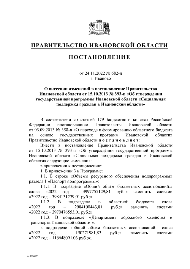 Постановление Правительства Ивановской области от 24.11.2022 N 682-п "О внесении изменений в постановление Правительства Ивановской области от 15.10.2013 N 393-п "Об утверждении государственной программы Ивановской области "Социальная поддержка граждан в Ивановской области"