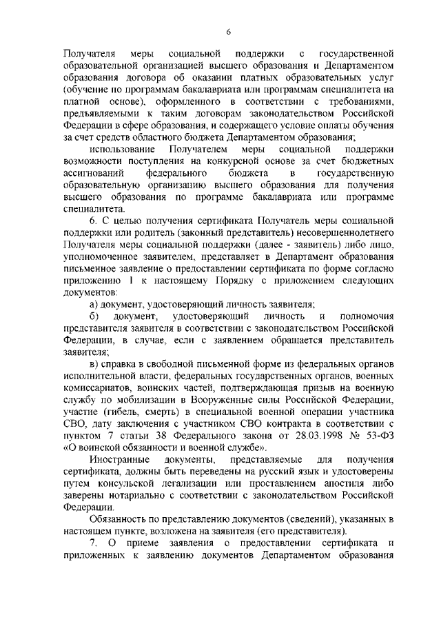 Постановление Правительства Ивановской области от 13.12.2022 N 721-п "Об утверждении Порядка предоставления меры социальной поддержки детям, пасынкам и падчерицам, в том числе совершеннолетним, граждан, принимающих участие (принимавших участие, в том числе погибших (умерших)) в специальной военной операции, проводимой с 24 февраля 2022 года, из числа военнослужащих и сотрудников федеральных органов исполнительной власти и федеральных государственных органов, в которых федеральным законом предусмотрена военная служба, сотрудников органов внутренних дел Российской Федерации, граждан Российской Федерации, заключивших после 21 сентября 2022 года контракт в соответствии с пунктом 7 статьи 38 Федерального закона от 28.03.1998 N 53-ФЗ "О воинской обязанности и военной службе" или заключивших контракт о добровольном содействии в выполнении задач, возложенных на Вооруженные Силы Российской Федерации, сотрудников уголовно-исполнительной системы Российской Федерации, выполняющих (выполнявших) возложенные на них задачи в период проведения специальной военной операции, а также граждан, призванных на военную службу по мобилизации в Вооруженные Силы Российской Федерации, на оплату обучения в государственной образовательной организации высшего образования (ее филиале), расположенной на территории Ивановской области"