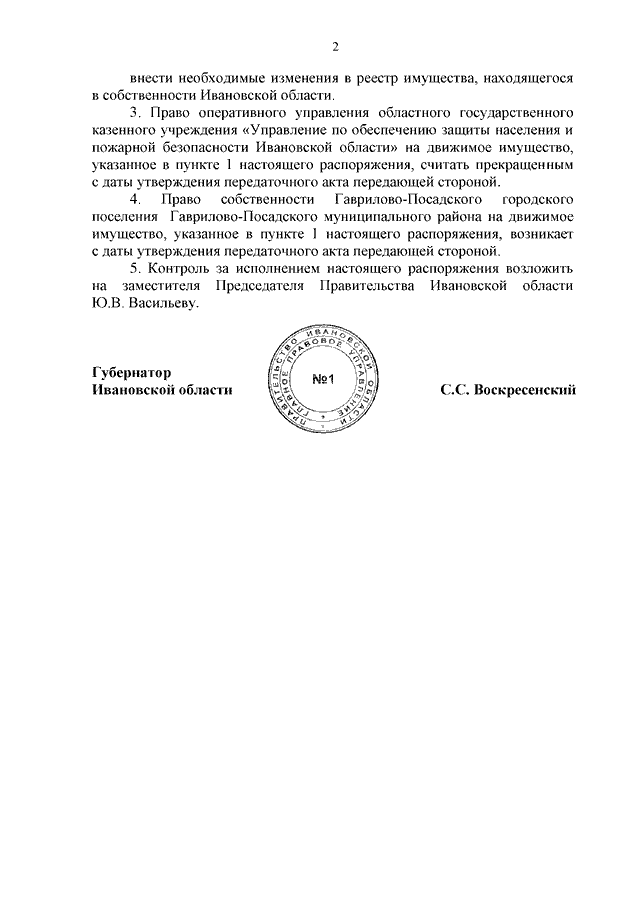Распоряжение Правительства Ивановской области от 20.12.2022 N 179-рп "О передаче движимого имущества из собственности Ивановской области в муниципальную собственность Гаврилово-Посадского городского поселения Гаврилово-Посадского муниципального района"