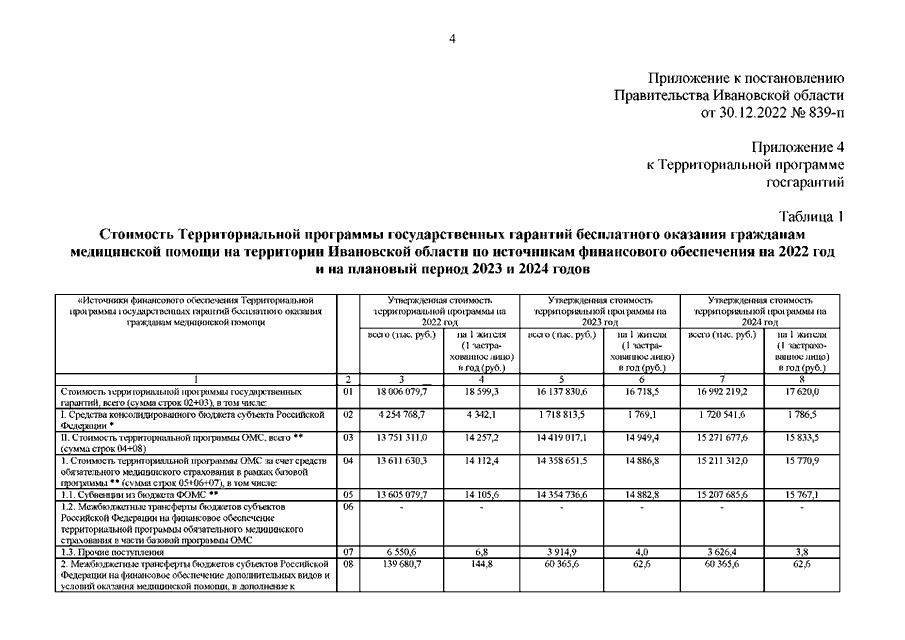 Постановление Правительства Ивановской области от 30.12.2022 N 839-п "О внесении изменений в постановление Правительства Ивановской области от 15.02.2022 N 71-п "Об утверждении Территориальной программы государственных гарантий бесплатного оказания гражданам медицинской помощи на территории Ивановской области на 2022 год и на плановый период 2023 и 2024 годов"