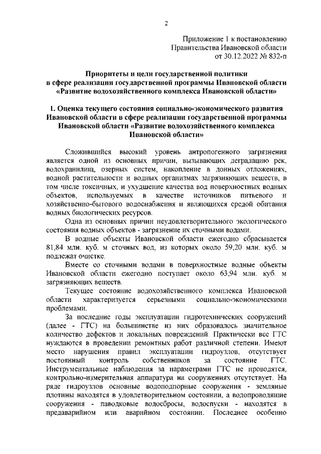 Постановление Правительства Ивановской области от 30.12.2022 N 832-п "О внесении изменений в постановление Правительства Ивановской области от 30.10.2013 N 430-п "Об утверждении государственной программы Ивановской области "Развитие водохозяйственного комплекса Ивановской области" (вместе с "Порядком предоставления и распределения субсидии бюджетам муниципальных образований Ивановской области на текущее содержание объектов инженерной защиты, обеспечивающих безопасность граждан, проживающих в зоне возникновения риска подтопления водами Горьковского водохранилища")