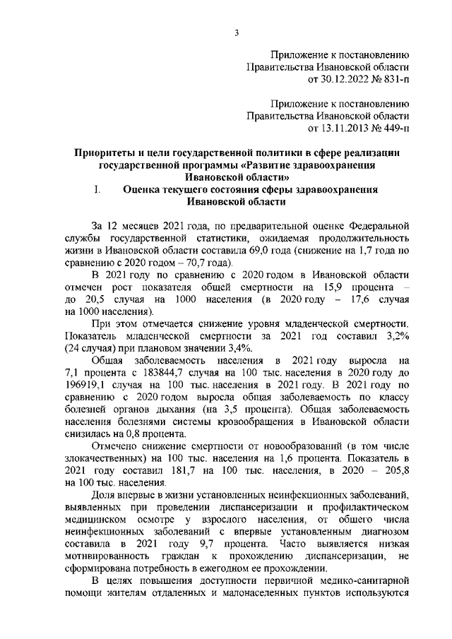 Постановление Правительства Ивановской области от 30.12.2022 N 831-п "О внесении изменений в постановление Правительства Ивановской области от 13.11.2013 N 449-п "Об утверждении государственной программы Ивановской области "Развитие здравоохранения Ивановской области"