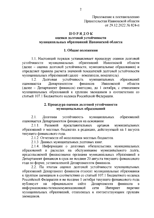 Постановление Правительства Ивановской области от 29.12.2022 N 824-п "О порядке оценки долговой устойчивости муниципальных образований Ивановской области"