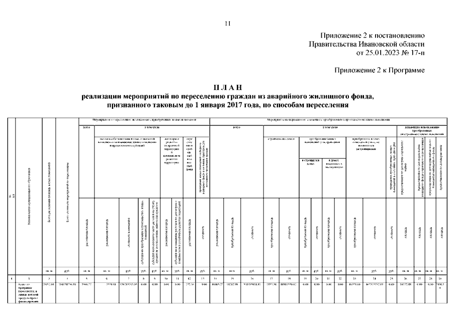 Постановление Правительства Ивановской области от 25.01.2023 N 17-п "О внесении изменений в постановление Правительства Ивановской области от 09.04.2019 N 131-п "Об утверждении региональной адресной программы "Переселение граждан из аварийного жилищного фонда на территории Ивановской области на 2019 - 2023 годы" (вместе с "Перечнем многоквартирных домов, признанных аварийными до 1 января 2017 года", "Планом реализации мероприятий по переселению граждан из аварийного жилищного фонда, признанного таковым до 1 января 2017 года, по способам переселения", "Планом мероприятий по переселению граждан из аварийного жилищного фонда, признанного таковым до 1 января 2017 года")