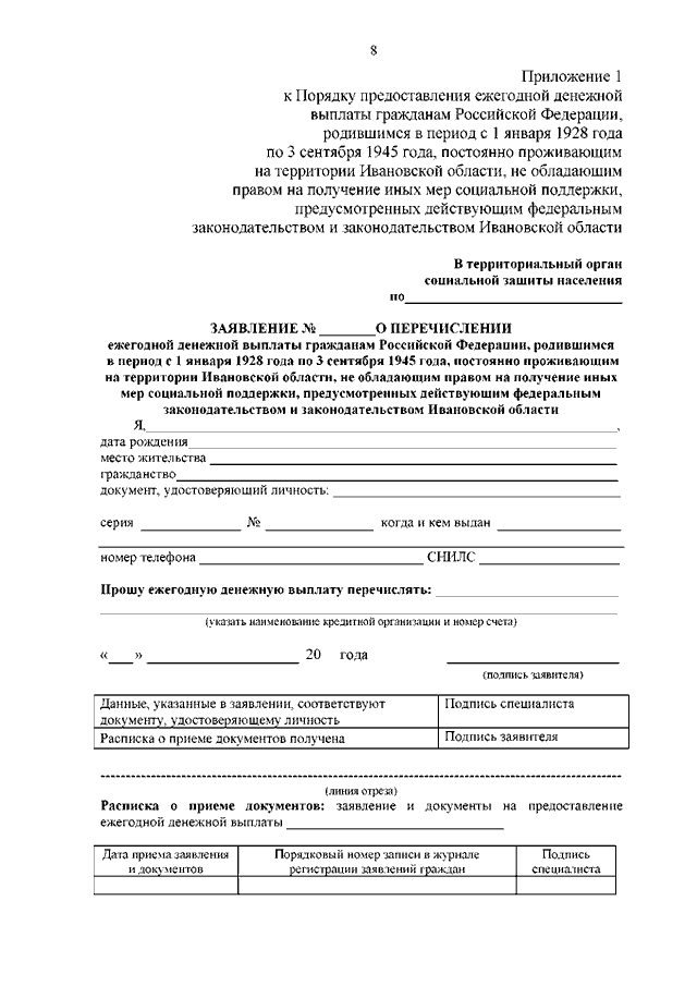 Постановление Правительства Ивановской области от 01.02.2023 N 39-п "Об утверждении Порядка предоставления ежегодной денежной выплаты гражданам Российской Федерации, родившимся в период с 1 января 1928 года по 3 сентября 1945 года, постоянно проживающим на территории Ивановской области, не обладающим правом на получение иных мер социальной поддержки, предусмотренных действующим федеральным законодательством и законодательством Ивановской области, и о внесении изменений в некоторые постановления Правительства Ивановской области"