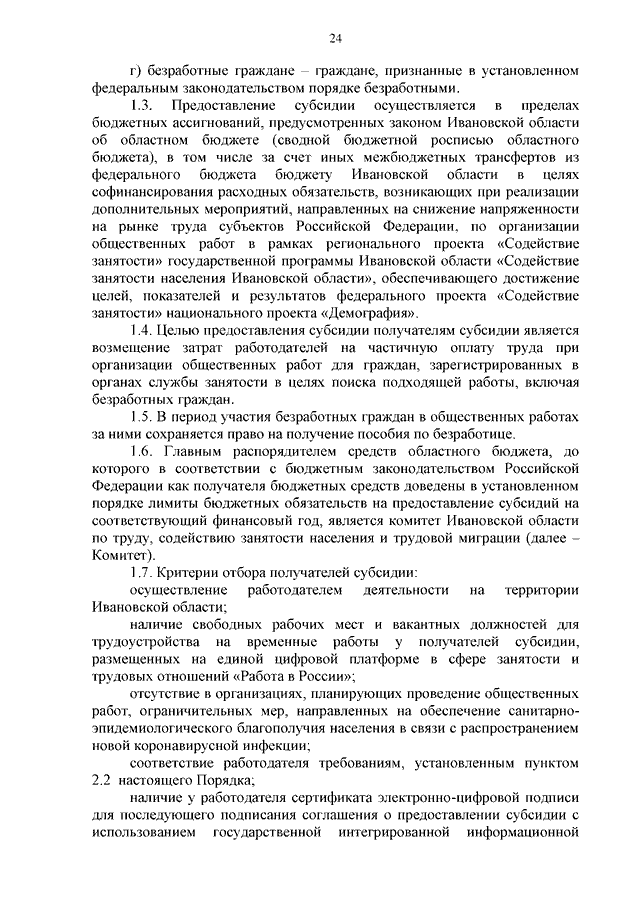 Постановление Правительства Ивановской области от 13.02.2023 N 69-п "О реализации в 2023 году отдельных мероприятий, направленных на снижение напряженности на рынке труда Ивановской области" (вместе с "Порядком предоставления в 2023 году субсидий на возмещение затрат работодателей на частичную оплату труда и материально-техническое оснащение при организации временного трудоустройства работников, находящихся под риском увольнения, включая введение режима неполного рабочего времени, простой, временную приостановку работ, предоставление отпусков без сохранения заработной платы и проведение мероприятий по высвобождению работников", "Порядком предоставления в 2023 году субсидий на возмещение затрат работодателей на частичную оплату труда при организации общественных работ для граждан, зарегистрированных в органах службы занятости в целях поиска подходящей работы, включая безработных граждан", "Порядком предоставления в 2023 году субсидий на возмещение затрат работодателей на организацию профессионального обучения и дополнительного профессионального образования работников промышленных предприятий, находящихся под риском увольнения, включая введение режима неполного рабочего времени, простой, временную приостановку работ, предоставление отпусков без сохранения заработной платы, проведение мероприятий по высвобождению работников")