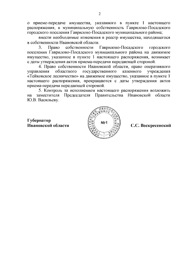 Распоряжение Правительства Ивановской области от 01.02.2023 N 12-рп "О передаче движимого имущества из собственности Ивановской области в муниципальную собственность Гаврилово-Посадского городского поселения Гаврилово-Посадского муниципального района"
