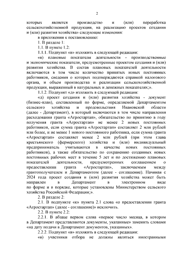 Постановление Правительства Ивановской области от 16.03.2023 N 109-п "О внесении изменений в постановление Правительства Ивановской области от 17.03.2021 N 119-п "Об утверждении Порядка предоставления грантов "Агростартап" крестьянским (фермерским) хозяйствам или индивидуальным предпринимателям, основным видом деятельности которых является производство и (или) переработка сельскохозяйственной продукции, на реализацию проектов создания и (или) развития хозяйства"