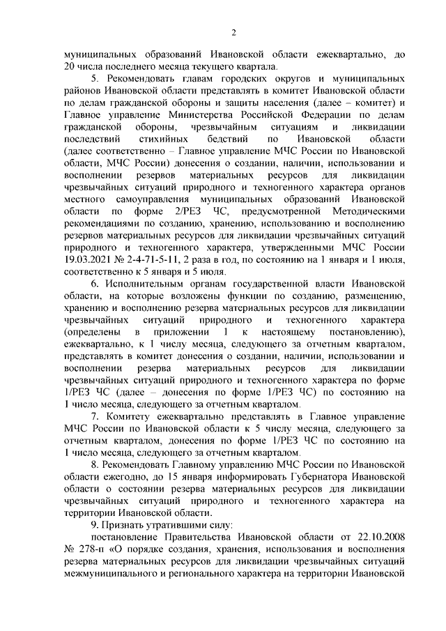 Постановление Правительства Ивановской области от 16.03.2023 N 133-п "О порядке создания, хранения, использования и восполнения резерва материальных ресурсов для ликвидации чрезвычайных ситуаций природного и техногенного характера на территории Ивановской области" (вместе с "Номенклатурой и объемами накопления резерва материальных ресурсов для ликвидации чрезвычайных ситуаций природного и техногенного характера на территории Ивановской области")