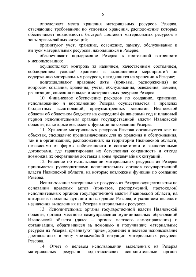 Постановление Правительства Ивановской области от 16.03.2023 N 133-п "О порядке создания, хранения, использования и восполнения резерва материальных ресурсов для ликвидации чрезвычайных ситуаций природного и техногенного характера на территории Ивановской области" (вместе с "Номенклатурой и объемами накопления резерва материальных ресурсов для ликвидации чрезвычайных ситуаций природного и техногенного характера на территории Ивановской области")