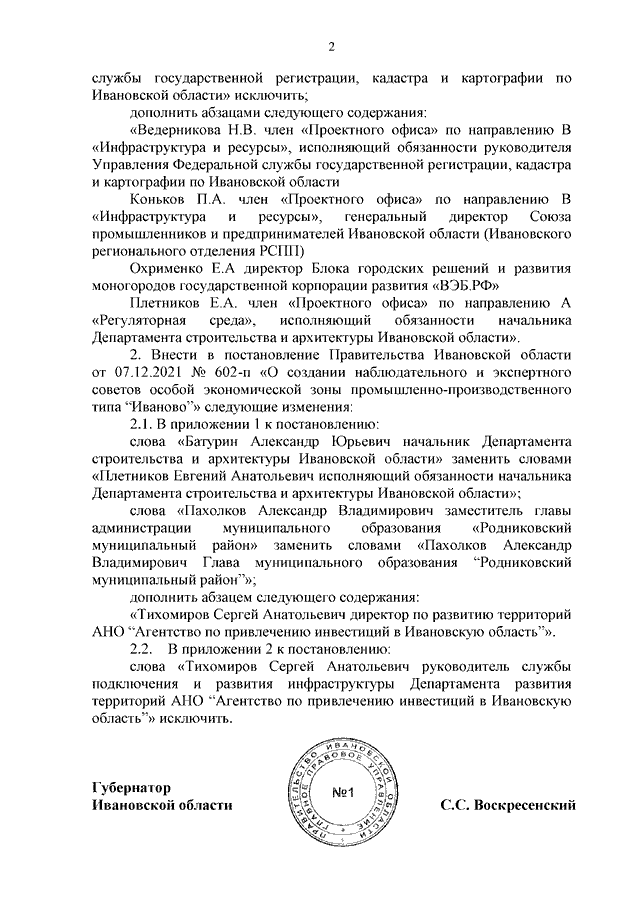 Постановление Правительства Ивановской области от 16.03.2023 N 131-п "О внесении изменений в постановления Правительства Ивановской области от 22.08.2019 N 346-п "О создании межведомственного совета по улучшению инвестиционного климата в Ивановской области и о признании утратившими силу некоторых постановлений Правительства Ивановской области" и от 07.12.2021 N 602-п "О создании наблюдательного и экспертного советов особой экономической зоны промышленно-производственного типа "Иваново"