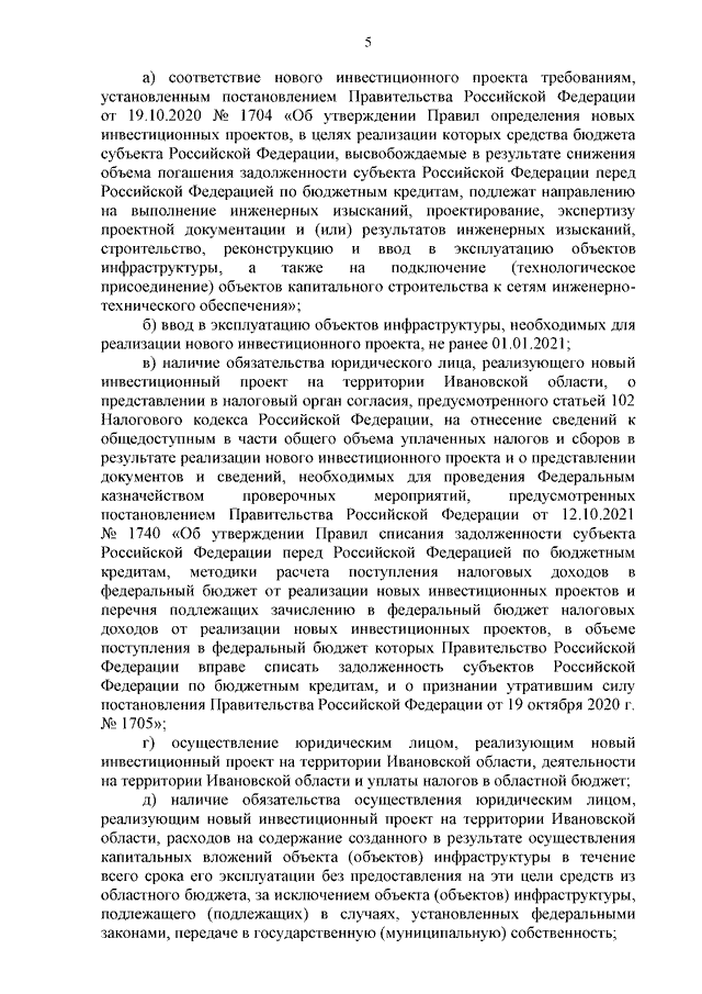 Распоряжение Правительства Ивановской области от 16.03.2023 N 32-рп "О мерах по реализации постановления Правительства Российской Федерации от 19.10.2020 N 1704 "Об утверждении Правил определения новых инвестиционных проектов, в целях реализации которых средства бюджета субъекта Российской Федерации, высвобождаемые в результате снижения объема погашения задолженности субъекта Российской Федерации перед Российской Федерацией по бюджетным кредитам, подлежат направлению на выполнение инженерных изысканий, проектирование, экспертизу проектной документации и (или) результатов инженерных изысканий, строительство, реконструкцию и ввод в эксплуатацию объектов инфраструктуры, а также на подключение (технологическое присоединение) объектов капитального строительства к сетям инженерно-технического обеспечения"