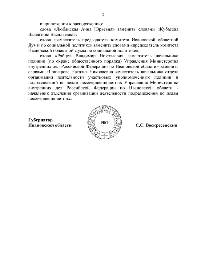 Распоряжение Правительства Ивановской области от 16.03.2023 N 34-рп "О внесении изменений в распоряжение Правительства Ивановской области от 10.04.2014 N 71-рп "Об утверждении состава экспертной комиссии Ивановской области по оценке предложений об определении мест, нахождение в которых может причинить вред здоровью детей, их физическому, интеллектуальному, психическому, духовному и нравственному развитию, а также общественных мест, в которых в ночное время не допускается нахождение детей без сопровождения родителей (лиц, их заменяющих), а также лиц, осуществляющих мероприятия с участием детей"