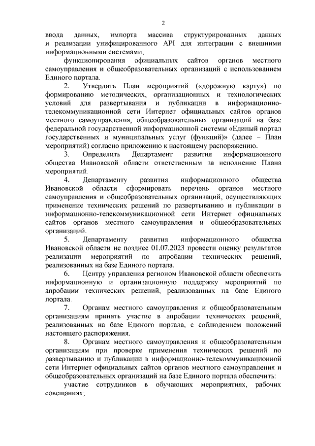 Распоряжение Правительства Ивановской области от 16.03.2023 N 39-рп "О реализации проекта по развертыванию и публикации в информационно-телекоммуникационной сети Интернет официальных сайтов органов местного самоуправления и общеобразовательных организаций на базе федеральной государственной информационной системы "Единый портал государственных и муниципальных услуг (функций)" на территории Ивановской области" (вместе с "Планом мероприятий ("дорожной картой") по формированию методических, организационных и технологических условий для развертывания и публикации в информационно-телекоммуникационной сети Интернет официальных сайтов органов местного самоуправления, общеобразовательных организаций на базе федеральной государственной информационной системы "Единый портал государственных и муниципальных услуг (функций)")