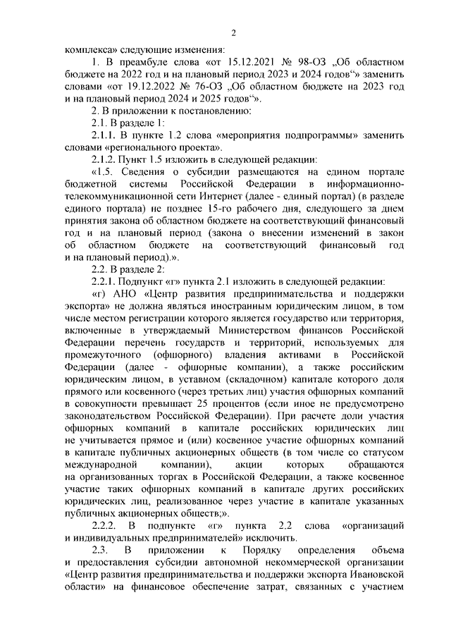 Постановление Правительства Ивановской области от 12.04.2023 N 169-п "О внесении изменений в постановление Правительства Ивановской области от 01.04.2021 N 155-п "Об утверждении Порядка определения объема и предоставления субсидии автономной некоммерческой организации "Центр развития предпринимательства и поддержки экспорта Ивановской области" на финансовое обеспечение затрат, связанных с участием в выставочно-ярмарочных мероприятиях в сфере агропромышленного комплекса"