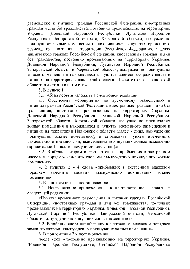 Постановление Правительства Ивановской области от 12.04.2023 N 175-п "О внесении изменений в постановление Правительства Ивановской области от 12.05.2022 N 235-п "Об обеспечении мероприятий по временному размещению и питанию граждан Российской Федерации, иностранных граждан и лиц без гражданства, постоянно проживающих на территориях Украины, Донецкой Народной Республики, Луганской Народной Республики, вынужденно покинувших территории Украины, Донецкой Народной Республики и Луганской Народной Республики, прибывших на территорию Российской Федерации в экстренном массовом порядке и находящихся в пунктах временного размещения и питания на территории Ивановской области"