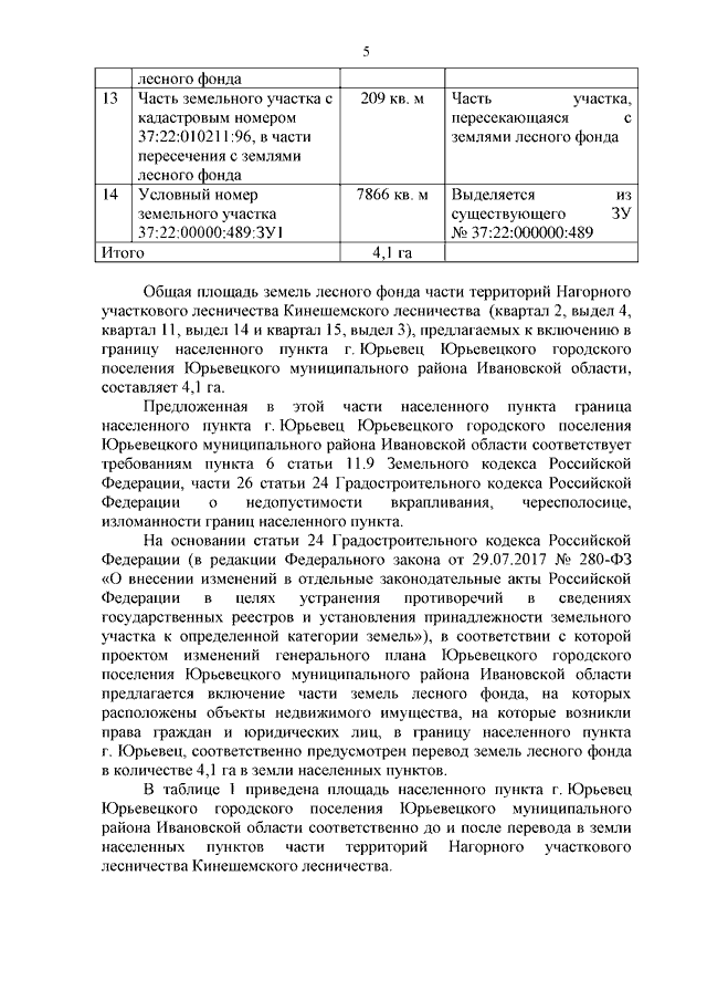 Распоряжение Правительства Ивановской области от 12.04.2023 N 62-рп "Об утверждении предложений комиссии, созданной Администрацией Юрьевецкого муниципального района Ивановской области, в соответствии с частью 20 статьи 24 Градостроительного кодекса Российской Федерации, в целях определения местоположения границ земельных участков, на которых расположены объекты недвижимого имущества, на которые возникли права граждан и юридических лиц, в целях их перевода из земель лесного фонда в земли населенных пунктов"