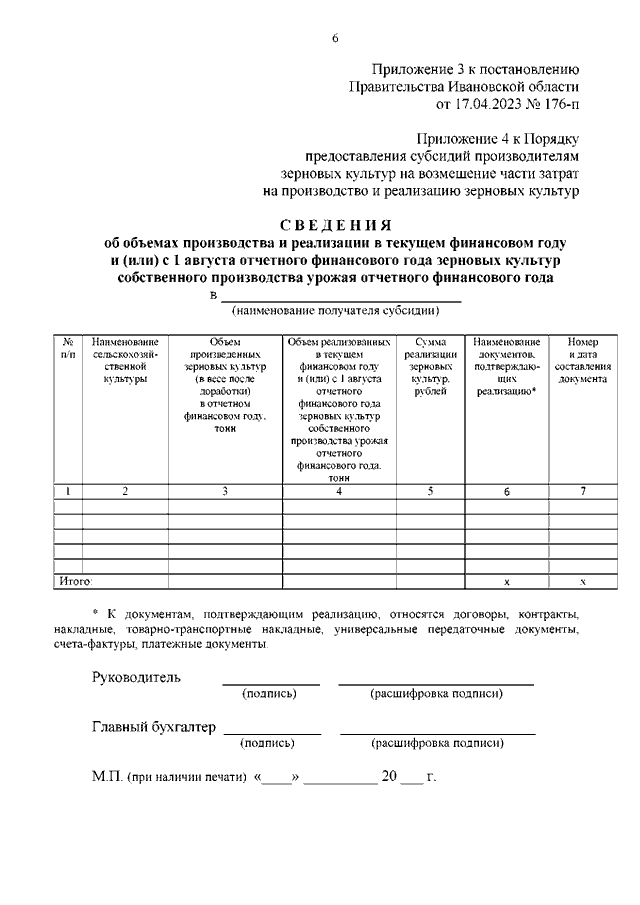 Постановление Правительства Ивановской области от 17.04.2023 N 176-п "О внесении изменений в постановление Правительства Ивановской области от 22.10.2021 N 501-п "Об утверждении Порядка предоставления субсидий производителям зерновых культур на возмещение части затрат на производство и реализацию зерновых культур"