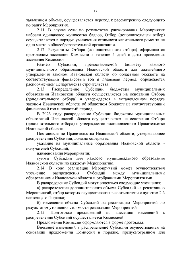 Постановление Правительства Ивановской области от 24.04.2023 N 179-п "О внесении изменений в постановление Правительства Ивановской области от 13.11.2013 N 450-п "Об утверждении государственной программы Ивановской области "Развитие образования Ивановской области" (вместе с "Порядком предоставления и распределения субсидий бюджетам муниципальных образований Ивановской области на капитальный ремонт объектов общего образования", "Порядком предоставления и распределения субсидий бюджетам муниципальных образований Ивановской области на капитальный ремонт объектов дополнительного образования детей", "Порядком предоставления и распределения субсидий бюджетам муниципальных образований Ивановской области на реализацию мероприятий по капитальному ремонту объектов образования", "Порядком предоставления и распределения субсидий бюджетам муниципальных образований Ивановской области на разработку (корректировку) проектной документации на капитальный ремонт объектов общего образования", "Порядком предоставления и распределения субсидий бюджетам муниципальных образований Ивановской области на реализацию мероприятий по модернизации инфраструктуры общего образования")