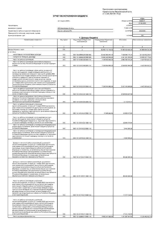 Распоряжение Правительства Ивановской области от 11.05.2023 N 74-рп "Об утверждении отчета об исполнении областного бюджета за I квартал 2023 года"