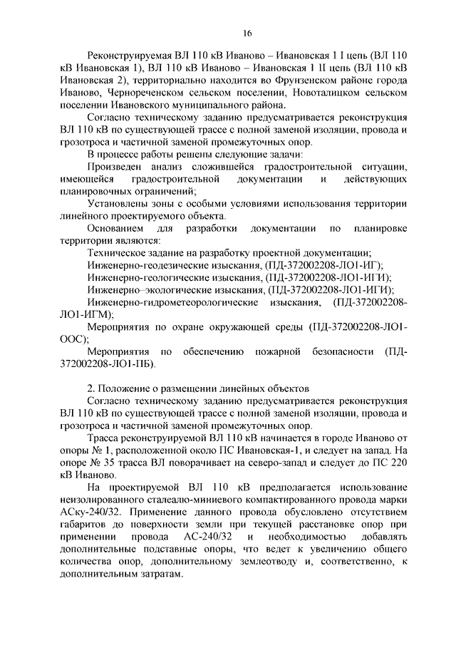 Распоряжение Правительства Ивановской области от 11.05.2023 N 69-рп "Об утверждении документации по планировке территории, предусматривающей размещение линейного объекта "Реконструкция ВЛ 110 кВ Иваново - Ивановская-1 I цепь (ВЛ 110 кВ Ивановская-1), ВЛ 110 кВ Иваново - Ивановская-1 II цепь (ВЛ 110 кВ Ивановская-2)"