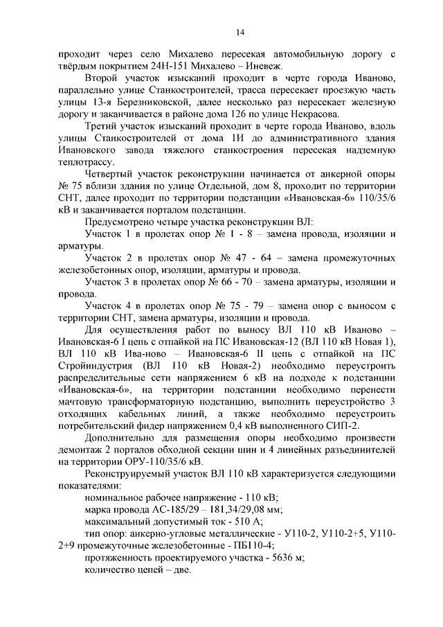 Распоряжение Правительства Ивановской области от 11.05.2023 N 70-рп "Об утверждении документации по планировке территории, предусматривающей размещение линейного объекта "Реконструкция ВЛ 110 кВ Иваново - Ивановская-6 I цепь с отпайкой на ПС Ивановская-12 (ВЛ 110 кВ Новая-1), ВЛ 110 кВ Иваново - Ивановская-6 II цепь с отпайкой на ПС Стройиндустрия (ВЛ 110 кВ Новая-2)"