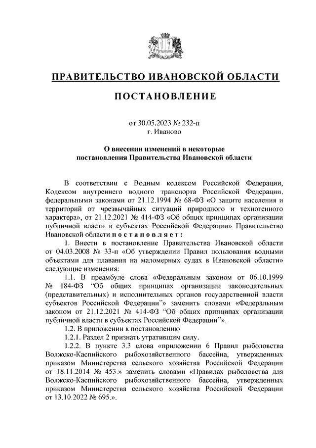 Постановление Правительства Ивановской области от 30.05.2023 N 232-п "О внесении изменений в некоторые постановления Правительства Ивановской области"
