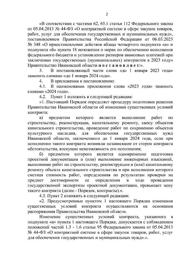 Постановление Правительства Ивановской области от 30.05.2023 N 238-п "О внесении изменений в постановление Правительства Ивановской области от 19.10.2022 N 585-п "Об утверждении Порядка подготовки решения об изменении существенных условий контракта, предметом которого является выполнение работ по строительству, реконструкции, капитальному ремонту, сносу объектов капитального строительства, проведение работ по сохранению объектов культурного наследия, для обеспечения государственных нужд Ивановской области, заключенного до 1 января 2023 года"