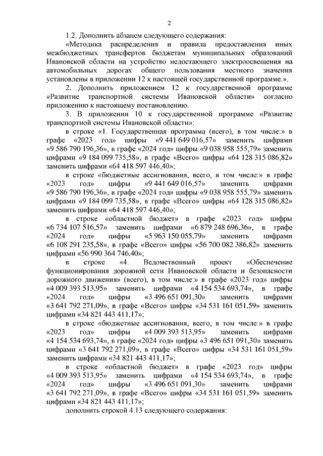 Постановление Правительства Ивановской области от 09.06.2023 N 251-п "О внесении изменений в постановление Правительства Ивановской области от 13.11.2013 N 447-п "Об утверждении государственной программы Ивановской области "Развитие транспортной системы Ивановской области" (вместе с "Методикой распределения и правилами предоставления иных межбюджетных трансфертов бюджетам муниципальных образований Ивановской области на устройство недостающего электроосвещения на автомобильных дорогах общего пользования местного значения")