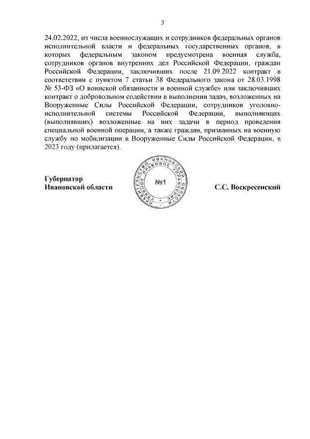 Постановление Правительства Ивановской области от 19.06.2023 N 255-п "О реализации в 2023 году мероприятий по проведению медицинской реабилитации граждан, принимающих участие (принимавших участие) в специальной военной операции, проводимой с 24.02.2022" (вместе с "Порядком предоставления из областного бюджета гранта в форме субсидии на реализацию мероприятий по проведению медицинской реабилитации граждан, принимающих участие (принимавших участие) в специальной военной операции, проводимой с 24.02.2022, из числа военнослужащих и сотрудников федеральных органов исполнительной власти и федеральных государственных органов, в которых федеральным законом предусмотрена военная служба, сотрудников органов внутренних дел Российской Федерации, граждан Российской Федерации, заключивших после 21.09.2022 контракт в соответствии с пунктом 7 статьи 38 Федерального закона от 28.03.1998 N 53-ФЗ "О воинской обязанности и военной службе" или заключивших контракт о добровольном содействии в выполнении задач, возложенных на Вооруженные Силы Российской Федерации, сотрудников уголовно-исполнительной системы Российской Федерации, выполняющих (выполнявших) возложенные на них задачи в период проведения специальной военной операции, а также граждан, призванных на военную службу по мобилизации в Вооруженные Силы Российской Федерации, в 2023 году")