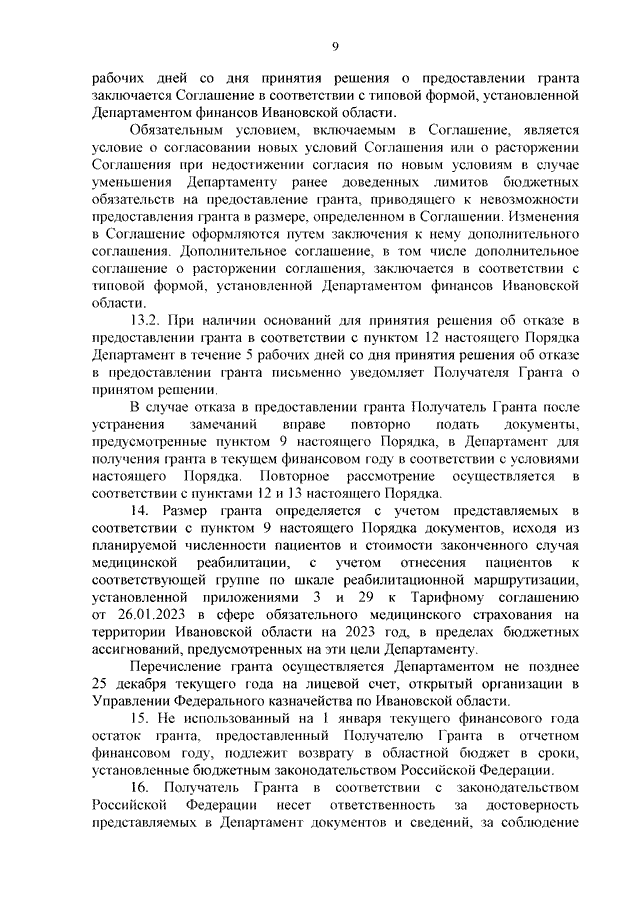 Постановление Правительства Ивановской области от 19.06.2023 N 255-п "О реализации в 2023 году мероприятий по проведению медицинской реабилитации граждан, принимающих участие (принимавших участие) в специальной военной операции, проводимой с 24.02.2022" (вместе с "Порядком предоставления из областного бюджета гранта в форме субсидии на реализацию мероприятий по проведению медицинской реабилитации граждан, принимающих участие (принимавших участие) в специальной военной операции, проводимой с 24.02.2022, из числа военнослужащих и сотрудников федеральных органов исполнительной власти и федеральных государственных органов, в которых федеральным законом предусмотрена военная служба, сотрудников органов внутренних дел Российской Федерации, граждан Российской Федерации, заключивших после 21.09.2022 контракт в соответствии с пунктом 7 статьи 38 Федерального закона от 28.03.1998 N 53-ФЗ "О воинской обязанности и военной службе" или заключивших контракт о добровольном содействии в выполнении задач, возложенных на Вооруженные Силы Российской Федерации, сотрудников уголовно-исполнительной системы Российской Федерации, выполняющих (выполнявших) возложенные на них задачи в период проведения специальной военной операции, а также граждан, призванных на военную службу по мобилизации в Вооруженные Силы Российской Федерации, в 2023 году")