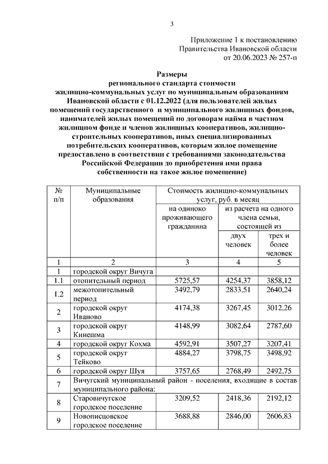 Постановление Правительства Ивановской области от 20.06.2023 N 257-п "Об установлении размеров региональных стандартов стоимости жилищно-коммунальных услуг"
