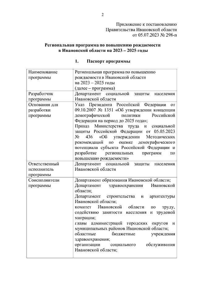Постановление Правительства Ивановской области от 05.07.2023 N 298-п "Об утверждении "Региональной программы по повышению рождаемости в Ивановской области на 2023 - 2025 годы"
