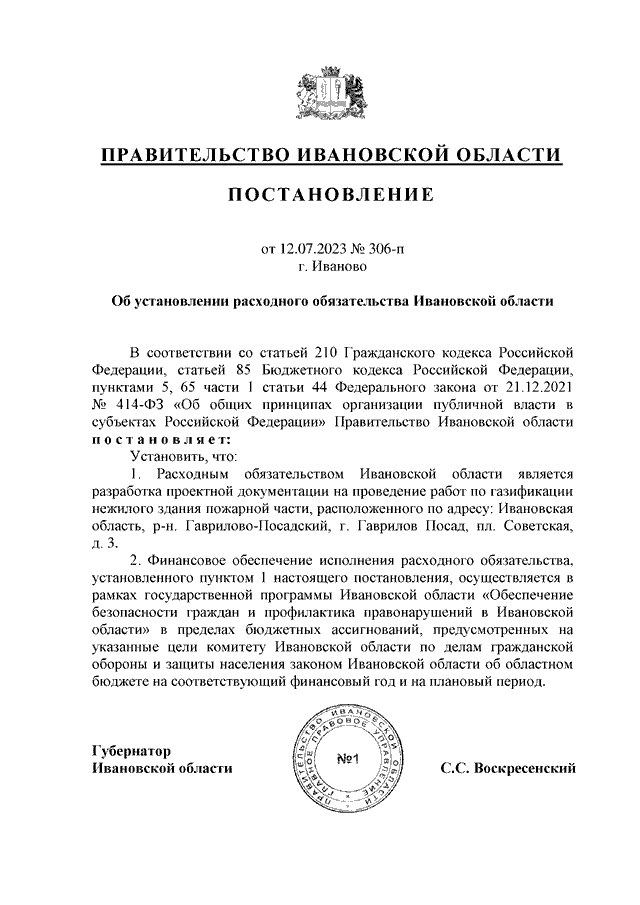 Постановление Правительства Ивановской области от 12.07.2023 N 306-п "Об установлении расходного обязательства Ивановской области"