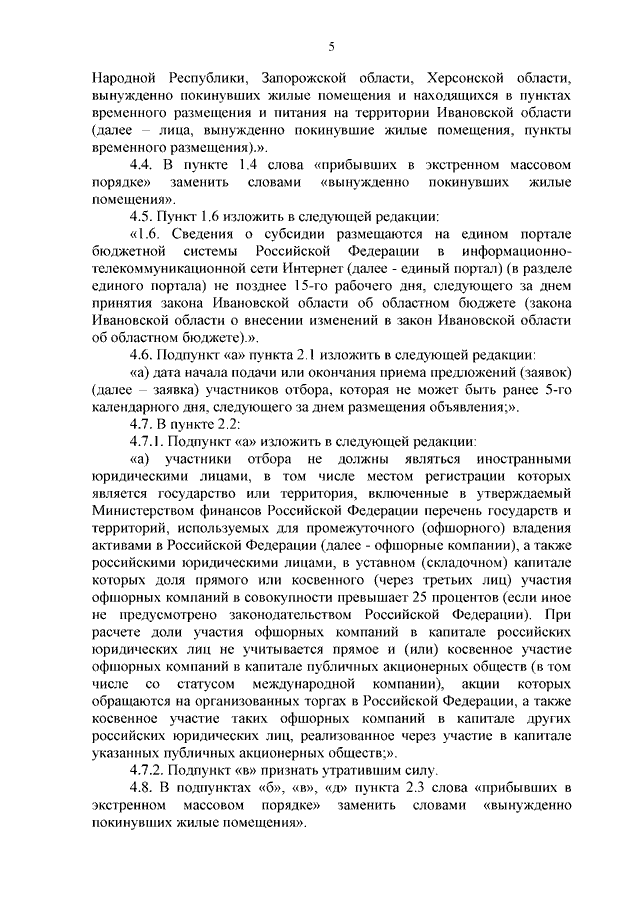 Постановление Правительства Ивановской области от 12.07.2023 N 314-п "О внесении изменений в постановление Правительства Ивановской области от 21.09.2022 N 515-п "Об утверждении Порядка предоставления субсидий юридическим лицам (за исключением субсидий государственным учреждениям) в целях возмещения затрат в связи с осуществлением мероприятий по временному размещению и питанию граждан Российской Федерации, иностранных граждан и лиц без гражданства, постоянно проживающих на территориях Украины, Донецкой Народной Республики, Луганской Народной Республики, вынужденно покинувших территории Украины, Донецкой Народной Республики и Луганской Народной Республики, прибывших на территорию Российской Федерации в экстренном массовом порядке и находящихся в пунктах временного размещения и питания на территории Ивановской области"