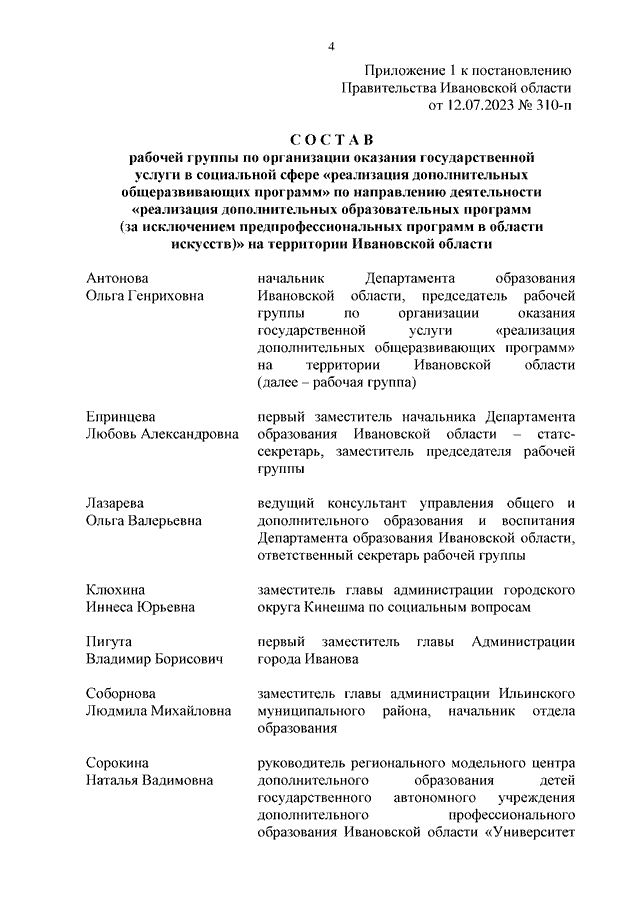 Постановление Правительства Ивановской области от 12.07.2023 N 310-п "Об организации оказания государственных услуг в социальной сфере при формировании государственного социального заказа на оказание государственных услуг в социальной сфере на территории Ивановской области" (вместе с "Планом апробации механизмов организации оказания государственной услуги в социальной сфере "реализация дополнительных общеразвивающих программ" по направлению деятельности "реализация дополнительных образовательных программ (за исключением предпрофессиональных программ в области искусств)" на территории Ивановской области")