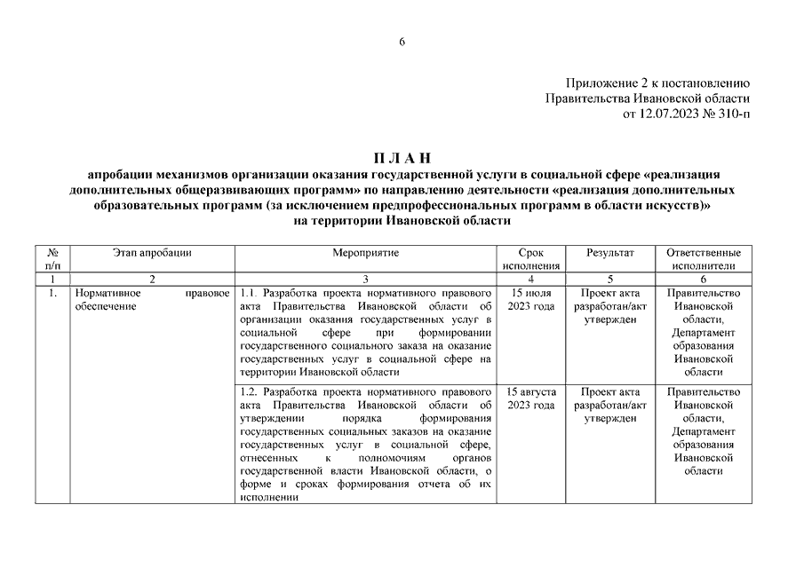 Постановление Правительства Ивановской области от 12.07.2023 N 310-п "Об организации оказания государственных услуг в социальной сфере при формировании государственного социального заказа на оказание государственных услуг в социальной сфере на территории Ивановской области" (вместе с "Планом апробации механизмов организации оказания государственной услуги в социальной сфере "реализация дополнительных общеразвивающих программ" по направлению деятельности "реализация дополнительных образовательных программ (за исключением предпрофессиональных программ в области искусств)" на территории Ивановской области")