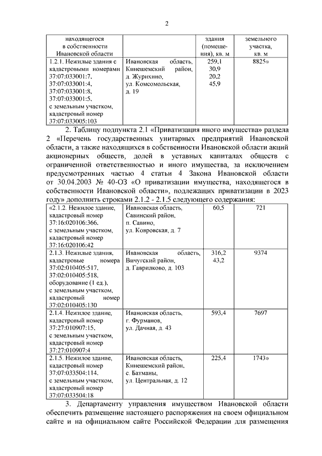 Распоряжение Правительства Ивановской области от 12.07.2023 N 109-рп "О внесении изменений в распоряжение Правительства Ивановской области от 20.10.2022 N 130-рп "Об утверждении прогнозного плана приватизации имущества, находящегося в собственности Ивановской области, на 2023 год"