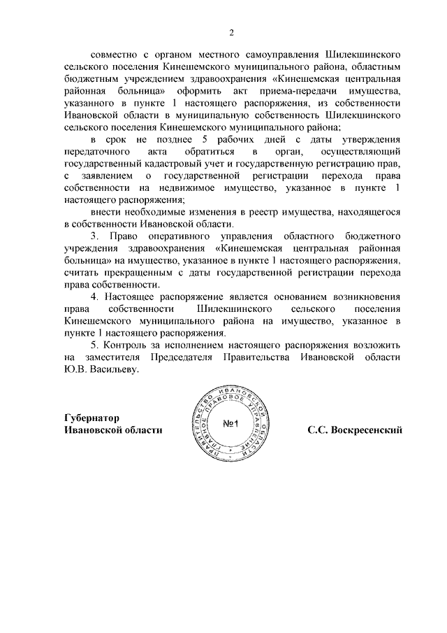 Распоряжение Правительства Ивановской области от 20.07.2023 N 116-рп "О передаче имущества из собственности Ивановской области в муниципальную собственность Шилекшинского сельского поселения Кинешемского муниципального района"