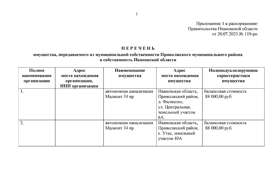 Распоряжение Правительства Ивановской области от 20.07.2023 N 119-рп "О передаче имущества из муниципальной собственности Приволжского муниципального района в собственность Ивановской области, из собственности Ивановской области в муниципальную собственность Приволжского муниципального района"