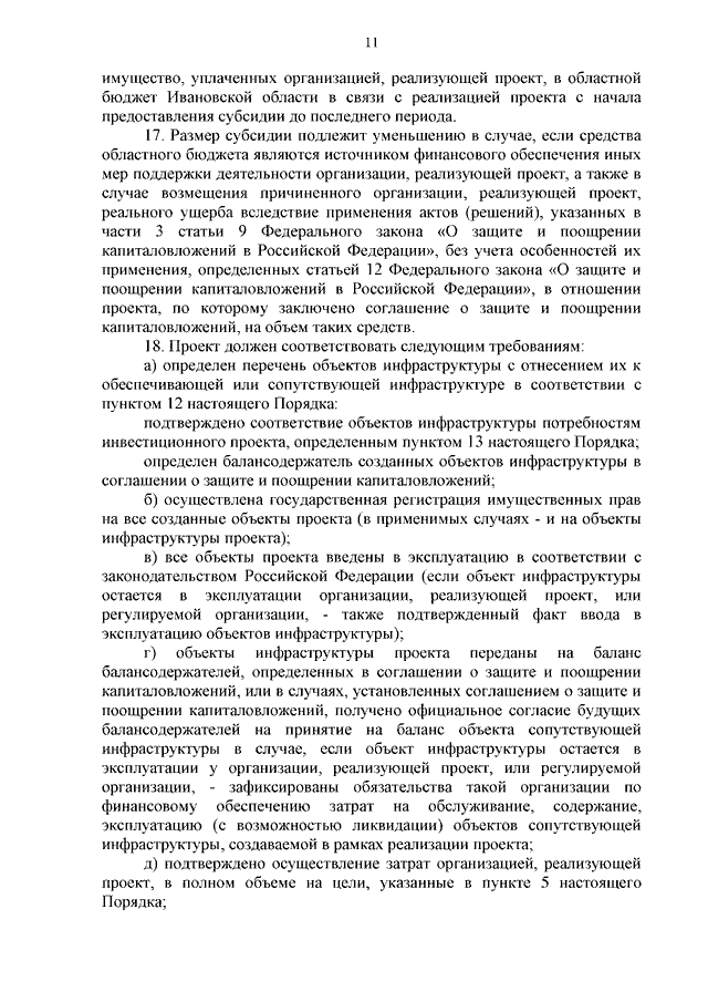 Постановление Правительства Ивановской области от 02.08.2023 N 345-п "Об утверждении Порядка возмещения затрат, указанных в части 1 статьи 15 Федерального закона от 01.04.2020 N 69-ФЗ "О защите и поощрении капиталовложений в Российской Федерации", понесенных организацией, реализующей проект, в рамках осуществления инвестиционного проекта, в отношении которого заключено соглашение о защите и поощрении капиталовложений"